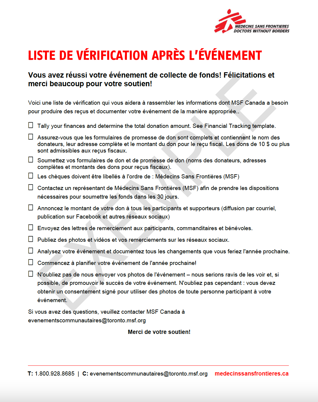 Contactez-nous pour obtenir un kit d’outils de collecte de fonds et d’autres ressources. Veuillez indiquer votre nom, et les détails de la collecte de fonds lorsque vous nous contactez.