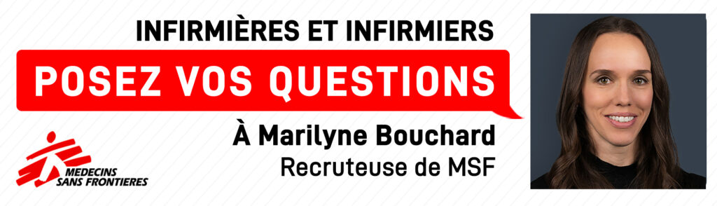 Médecins Sans Frontières vous invite à rencontrer Marilyne Bouchard, membre de l’équipe de recrutement pour le personnel mobile international, afin de discuter du rôle des infirmières et infirmiers.