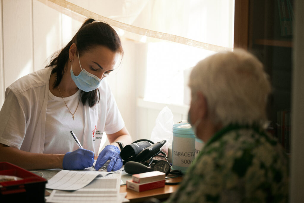 Depuis le début de l’année, les équipes de MSF ont traité plus de 3 200 personnes comme Vira. Ces patients et patientes reçoivent d’abord une consultation dans un hôpital soutenu par MSF près de la ligne de front, puis sont directement orientés vers des services hospitaliers spécialisés pour stabiliser leur maladie chronique. Ce chiffre représente plus de 75 % de l’ensemble des gens soutenus par MSF lors de l’étape de triage. Les diagnostics les plus fréquents sont l’hypertension, le diabète et les cardiopathies ischémiques.